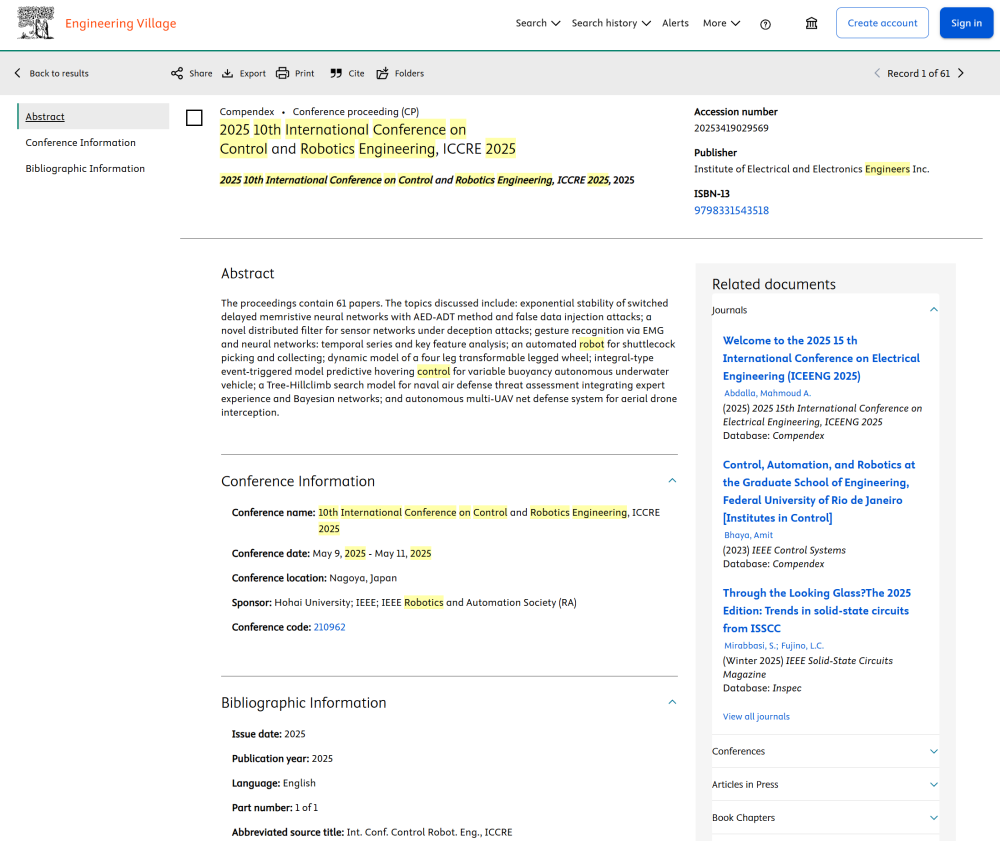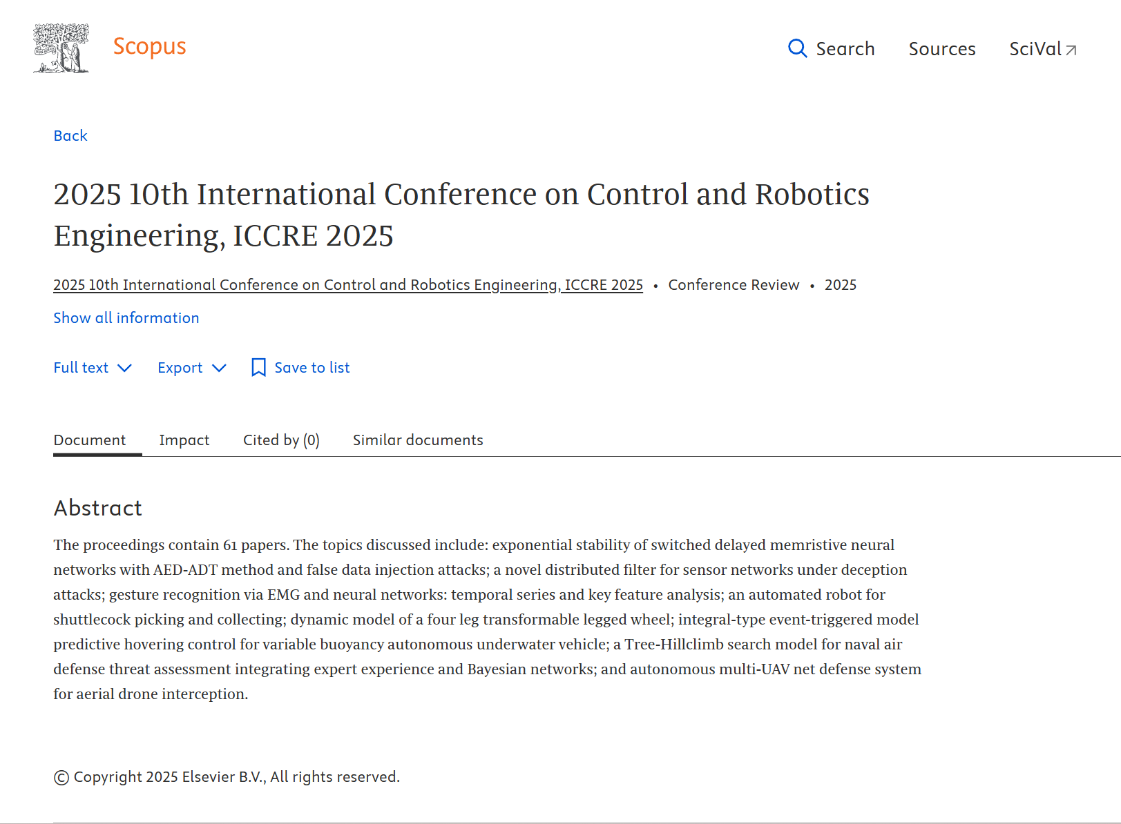 Papers of ICCRE2025 are indexed by Ei Compendex and Scopus!!